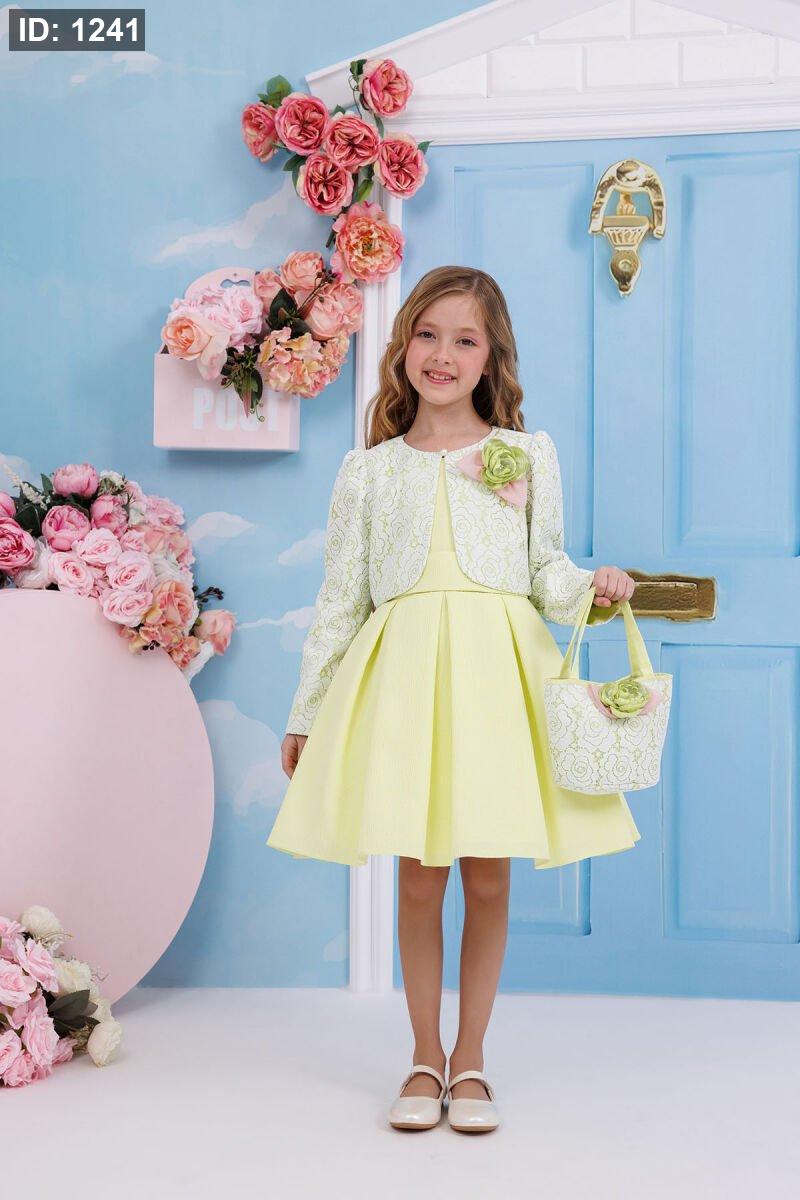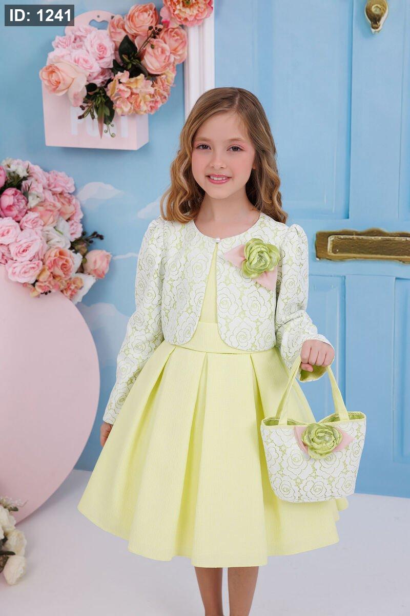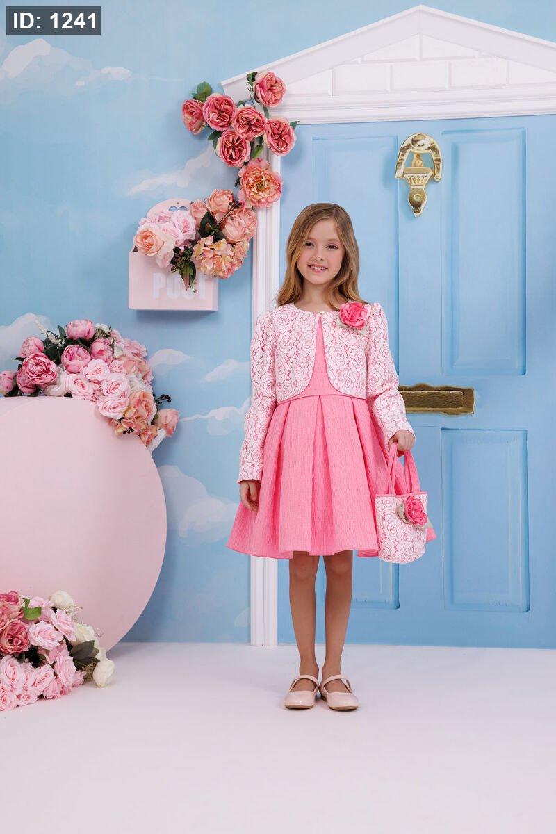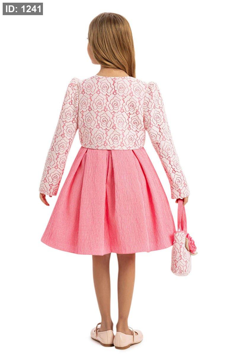 - الإغلاق: زر لؤلؤي واحد للجاكيت، وسحاب خلفي مخفي للفستان.