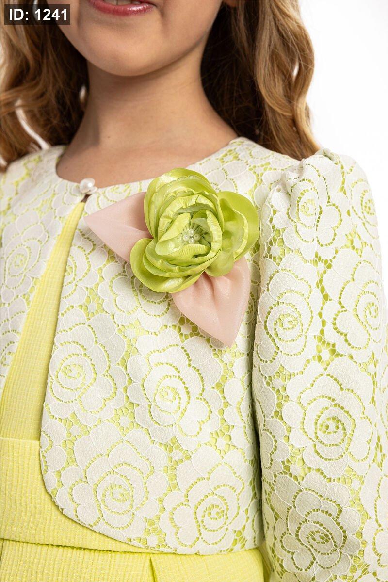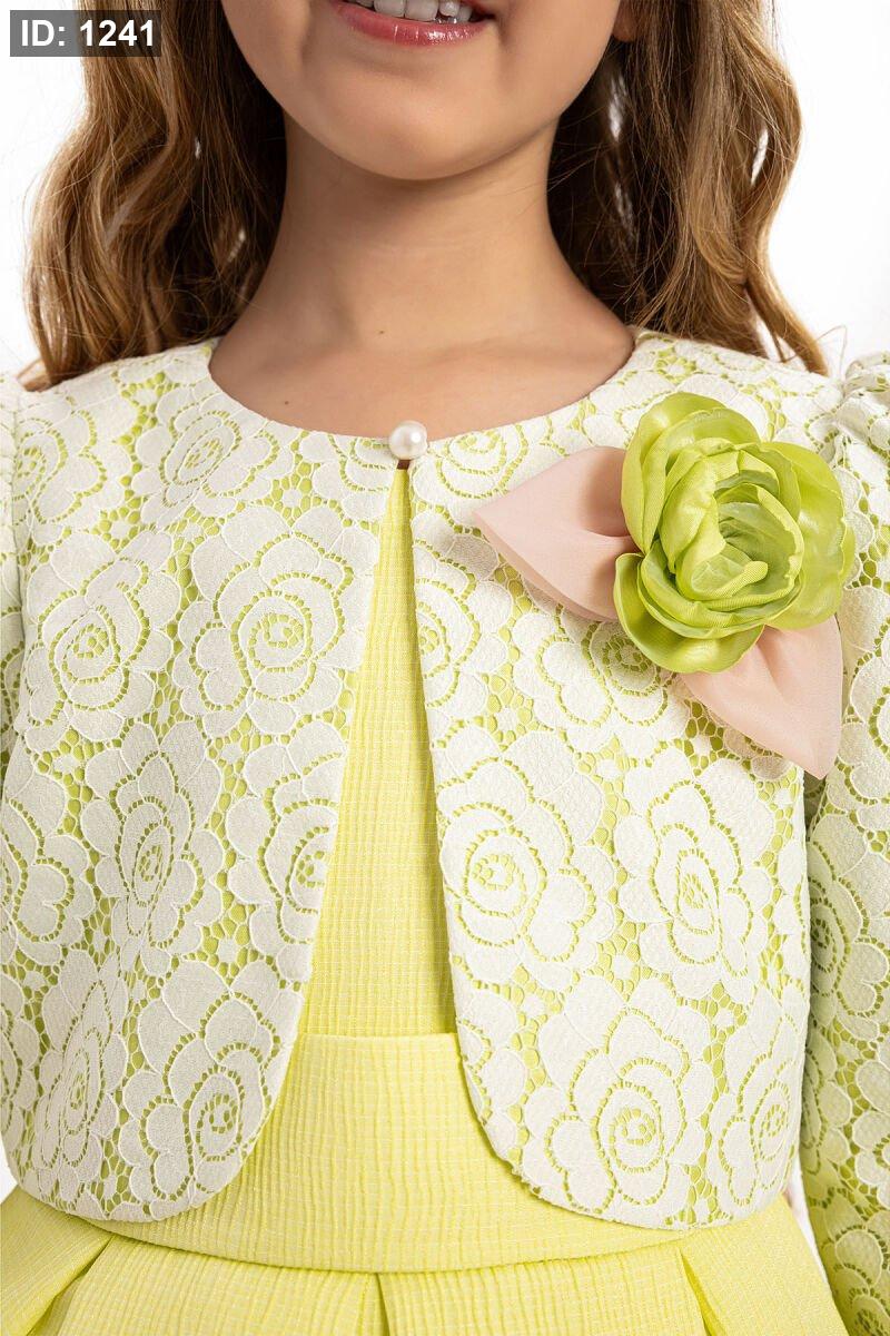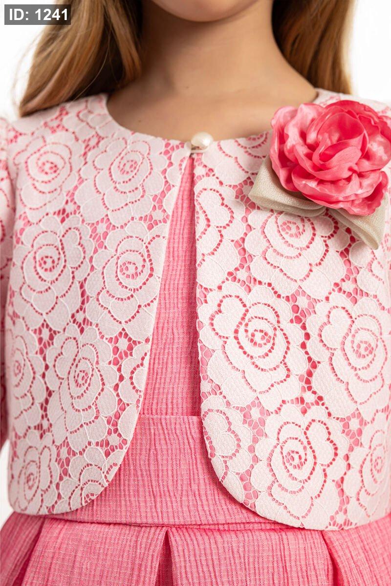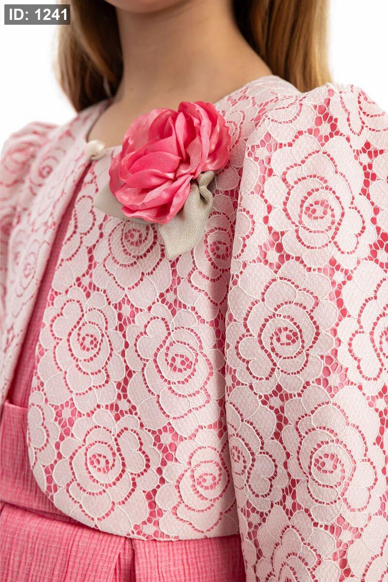 - خامة الجاكيت: قماش الدانتيل (Lace) بنقشة الزهور البارزة.