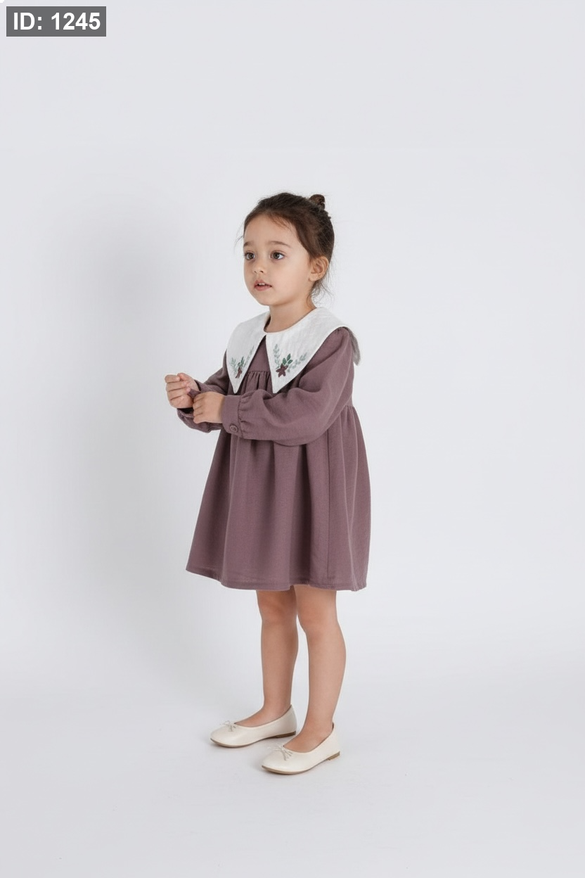 - قصة مريحة (Loose Fit) - الفستان يأتي بتصميم واسع ينسدل بنعومة من الصدر، مما يضمن حرية كاملة لحركة الطفلة.