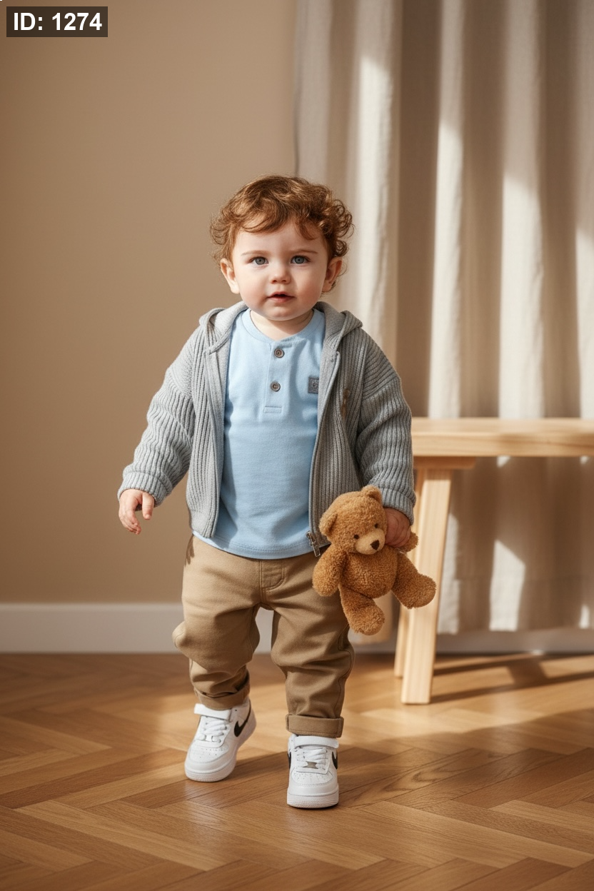 هذا الطقم يجمع بين الأناقة العملية واللمسة الطفولية اللطيفة، وهو مثالي للأجواء الشتوية بفضل خاماته الدافئة وتصميمه المريح.