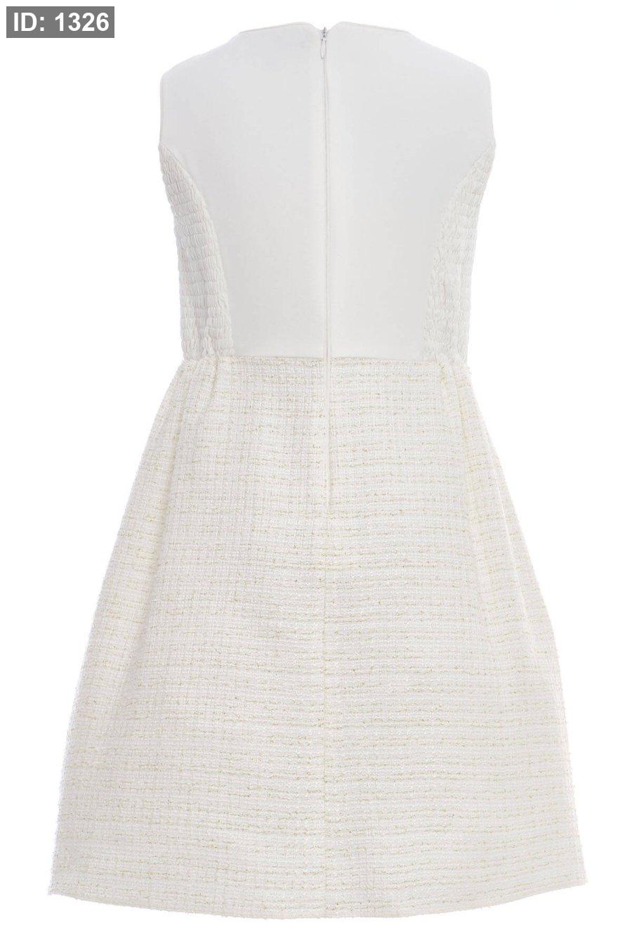 تصميم "الكت" - الجزء العلوي من الفستان يأتي بتصميم بسيط بدون أكمام وبياقة دائرية ليتم ارتداؤه بسهولة تحت الجاكيت.