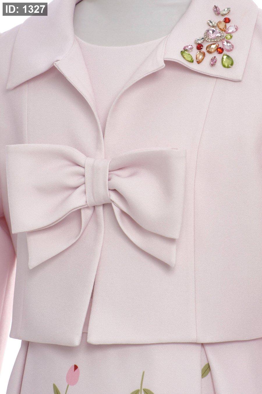 فيونكة أمامية ضخمة - تتوسط الجاكيت فيونكة كبيرة الحجم تمنحه طابعاً طفولياً أنيقاً.