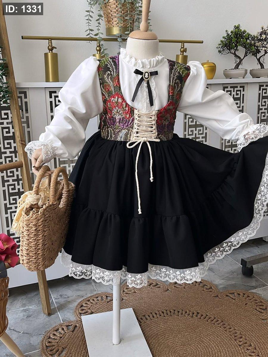 الخداع البصري - ذكاء التصميم يكمن في كونه "قطعة واحدة" لكنه يعطي انطباع الطقم الكامل (تنورة + قميص + صدرية)، مما يضمن بقاء الملابس مرتبة على الطفلة طوال الوقت.