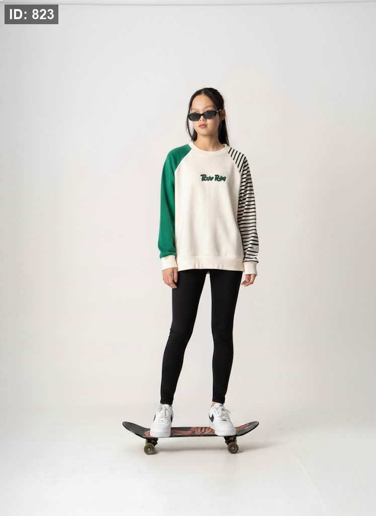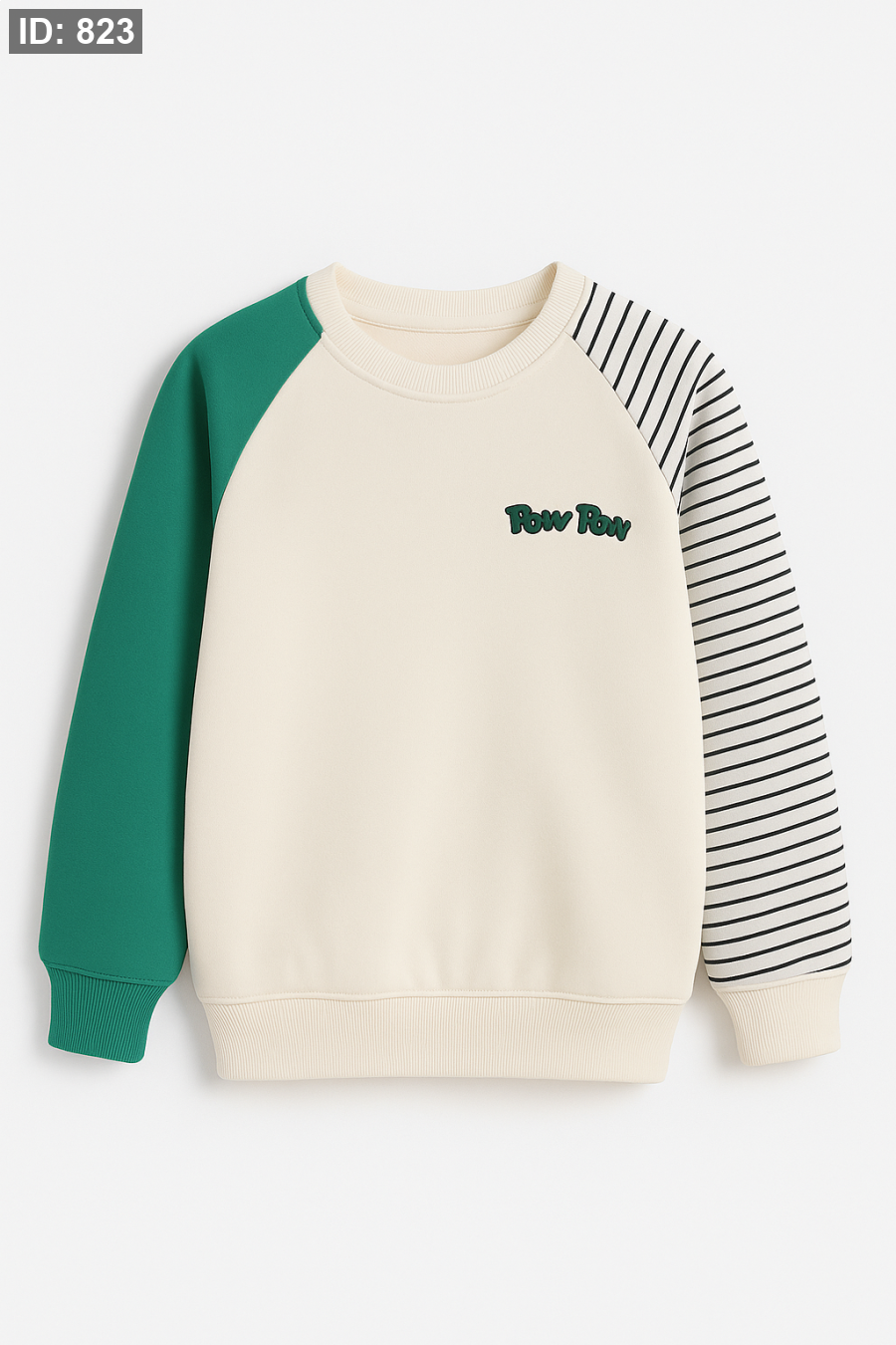 •التفاصيل: أحد الأكمام باللون الأخضر السادة، والآخر بخطوط أبيض وأسود، ما يعطي تباين عصري ومميز.